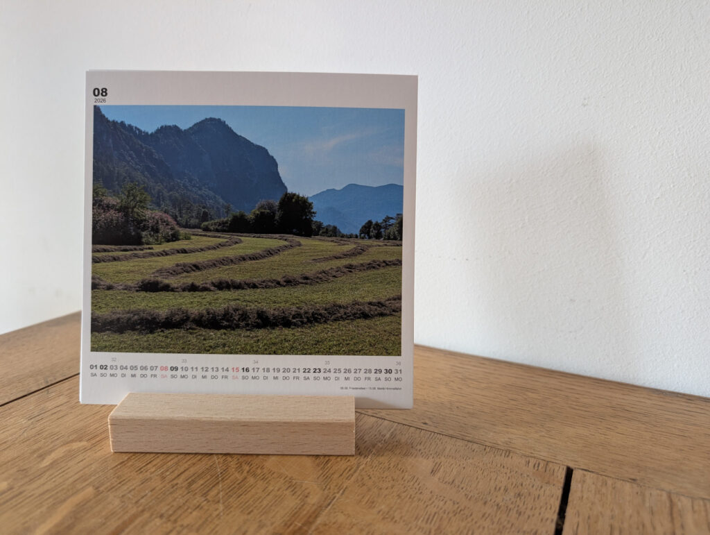 Dieses Jahr habe ich wieder einen Jahreskalender erstellt, dieses Mal in zwei Ausführungen, einen Tischkalender und den Klassiker, also den Wandkalender (beide dm Foto-Paradies). Der Tischkalender gefällt mir besser, weil er edler wirkt, insbesondere mit dem einfach gehaltenen Holzfuß. Den Wandkalender mag ich, weil ich am Ende des Jahres meine Lieblingsbilder viel besser irgendwo hinhängen kann, da sie größer sind. Davor schneide ich sie zu und befreie sie so vom Kalenderteil.